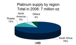Znane złoża platyny są oceniane na 3.5 miliarda uncji, przy czym wieloletnia przewaga popytu nad podażą przyczyniła się do praktycznego wyczerpania się powierzchniowych zapasów platyny. Obecnie cała produkcja kupowana jest „na pniu” a popyt i podaż platyny są +/- w równowadze. Wg GSMF w 2006 global deficyt platyny rzędu 2-3% ustąpi w 2007 miejsca niewielkiej nadwyżce rzędu 1%.
