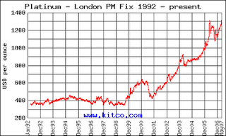 Ha, tutaj dochodzimy własnie do sedna sensownej spekulacji! Po pierwsze, popyt inwestycyjny na platynę jest i był minimalny. Może się to jednak zmienić dosłownie z dnia na dzień. Co więcej, wydaje sie całkiem możliwe że w pewnym momencie w swoim trendzie wzrostowym platyna dozna, na skutek czynników zewnętrznych, okresu gwałtownego przyspieszenia. Platyna jest bardzo małym rynkiem, i wystarczy stosunkowo niewielki kapitał – jakiś np. hedge fund udający się w te rejony – aby doprowadzić do znacznych ruchów cen. Jeżeli na przykład choćby minimalna część gór papierowego pieniądza na światowych rynkach kapitałowych poczuje się zagrożona i zacznie szukać bezpiecznej przystani, można spodziewać się znacznie wyższych cen złota i srebra. W tej sytuacji ich bardziej jeszcze dystyngowana kuzynka, platyna, może poszybować nieproporcjonalnie wyżej.