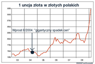 Jedno jest pewne. Inwestorzy którzy w 2004 uwierzyli red. J.Pińskiemu że złoto musi “po prostu spadać” muszą teraz po prostu pluć sobie w brodę. Zwłaszcza ci którzy w międzyczasie stracili kapitał na giełdzie która, jak wolno się domyślać, tytułem odwrotności musiała zapewne “po prostu rosnąć”.