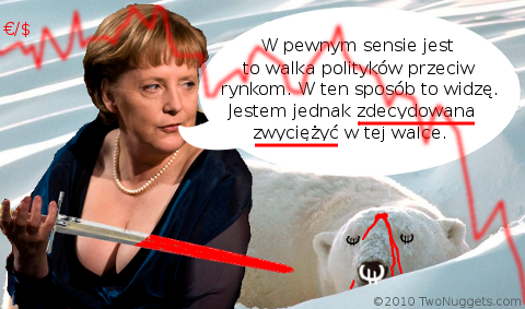 Sprzedawanie czegos czego sie nie ma i to probujac manipulowac cena rynkowa(bo do tego naked short)sie sprowadza powinno byc nie tylko zakazane ale wrecz traktowane jako przestepstwo.Wiec ruch Merkel jakby sluszny szkoda tylko ze przeslanki byly niezbyt chwalebne(ochrona Grecji,umoczonych bankow itp).No i czasowo niezbyt szczesliwie sie wszczelila bo rynki tylko szukaly pretekstu do korekty wiec malo zawalu nie dostaly-jakby co to znowu bedzie na Niemcow;)