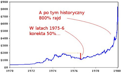 „Korekta w złocie od marcowego piku do dna wynosi prawie 50% (w $), bardzo podobnie to opisanej sytuacji z 1975”